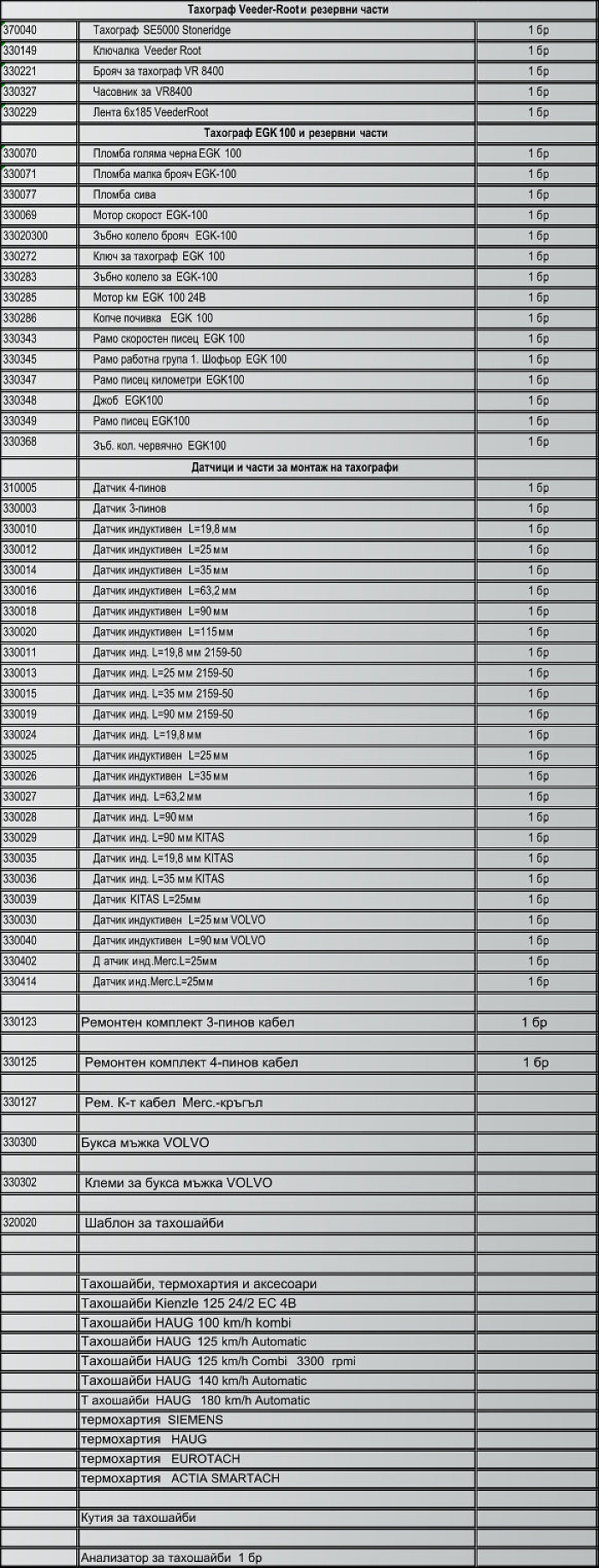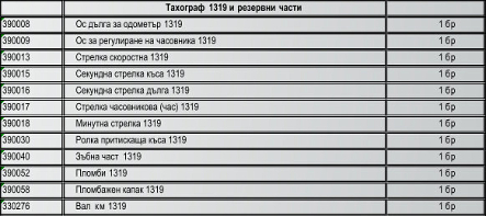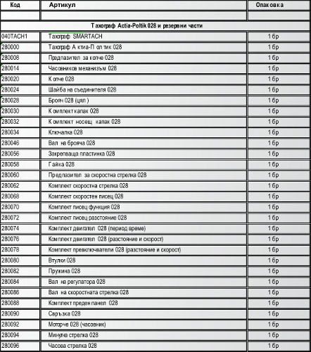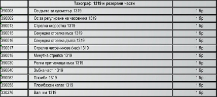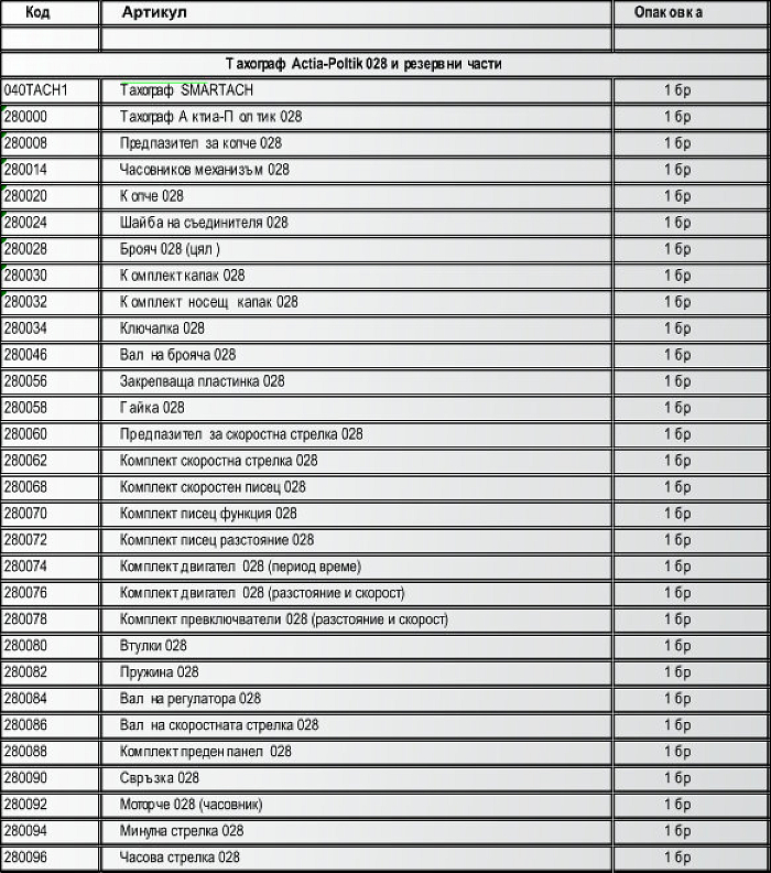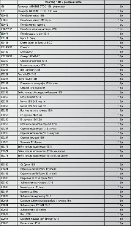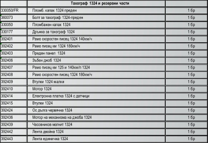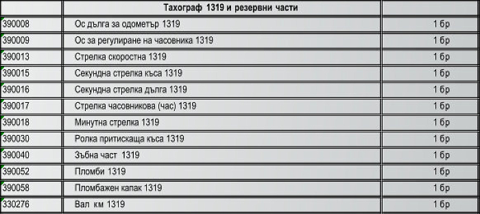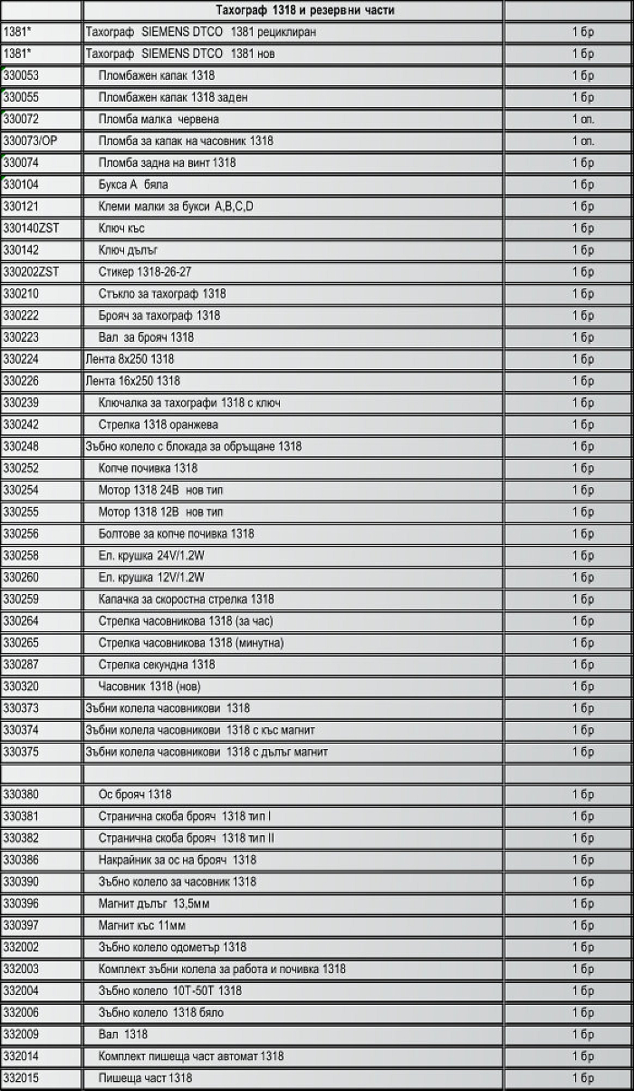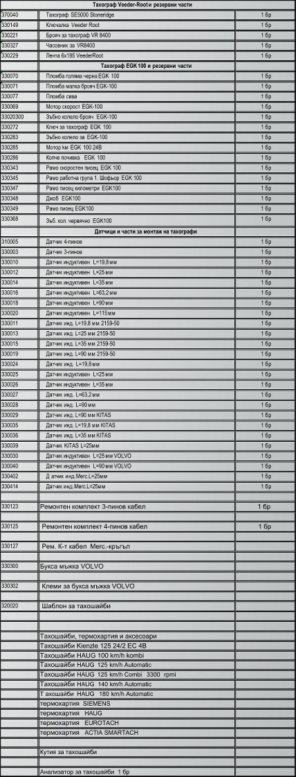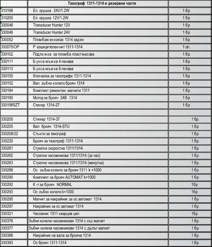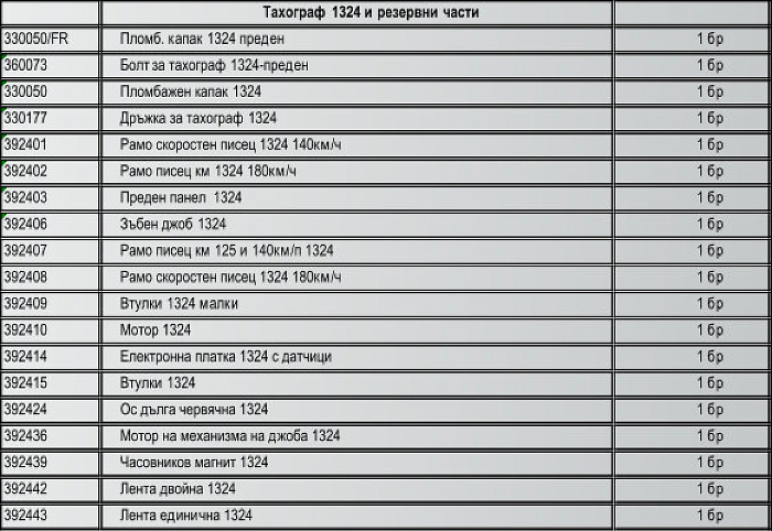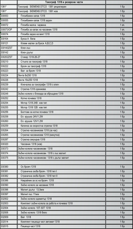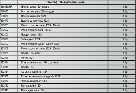 Списък на поддържани тахографи и резервни части